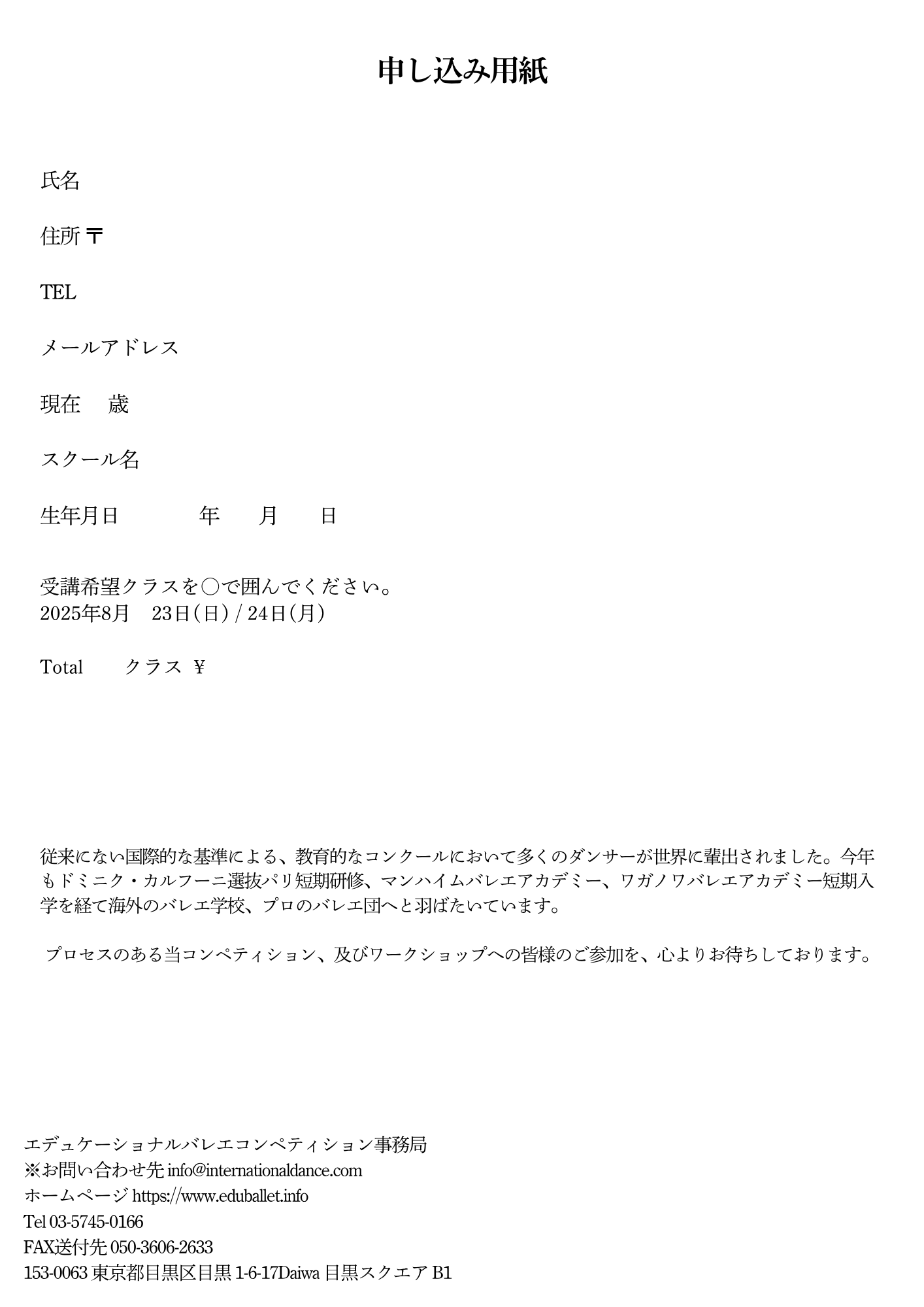 ※オンライン申込:websiteエデュケーショナルバレエコンペティション (eduballet.info) よりお申込みください。クレジット決済可能